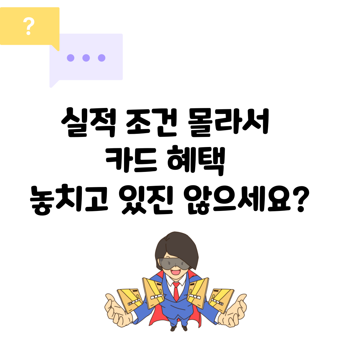 이런 경험 있으셨나요?의외로 많은 분들이 카드 실적 조건을 잘 몰라서 받을 수 있는 혜택을 놓치고 계시고,